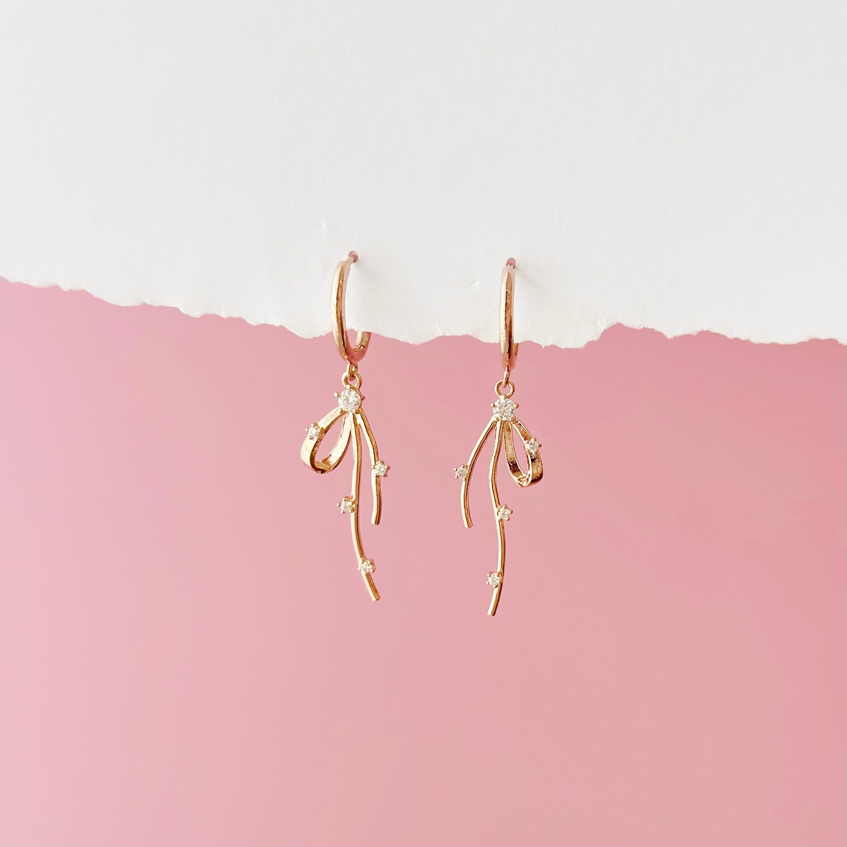 Rose Gold Promise You Ribbon Hoop Earrings